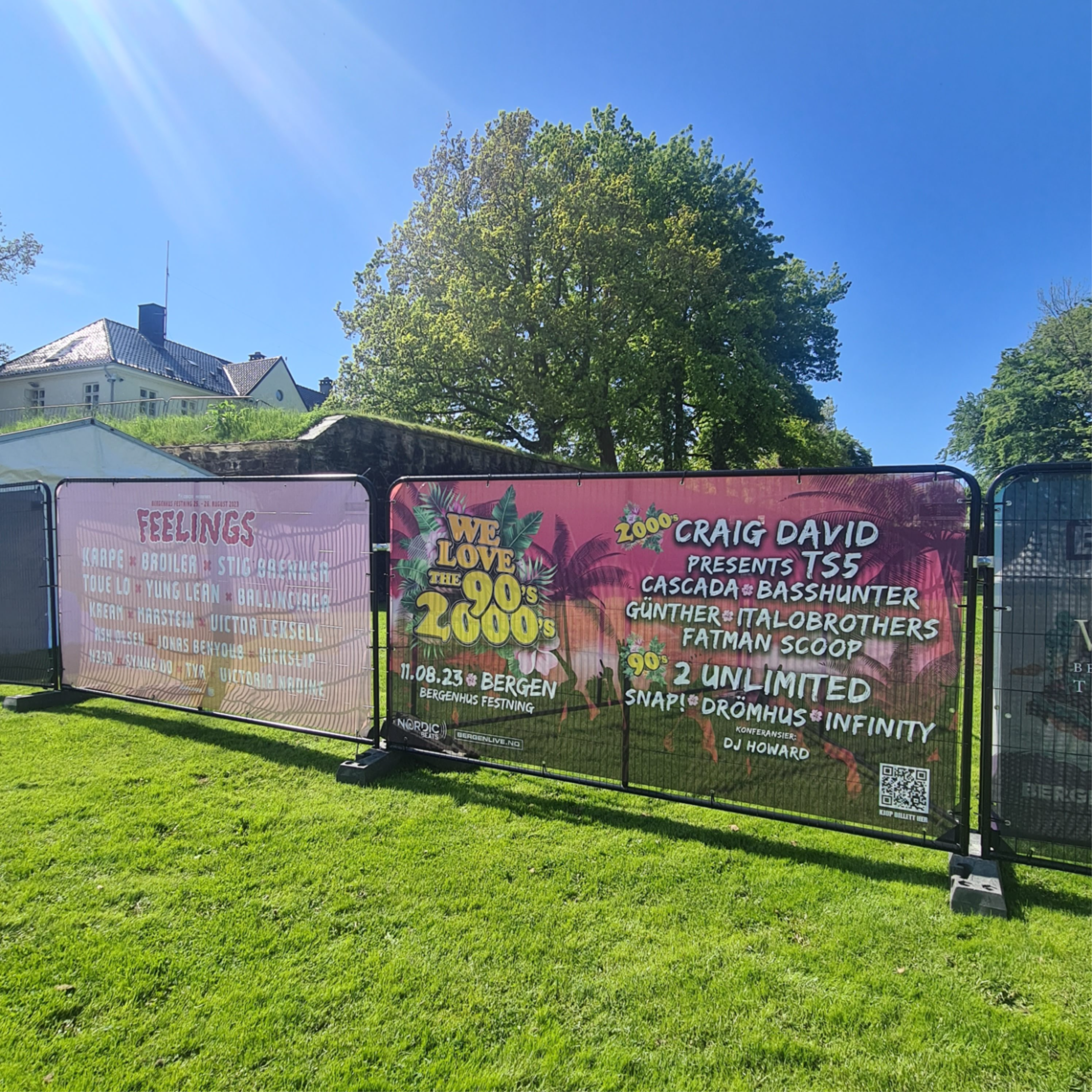 - Store reklameplakater på gjerdene inne på konsertområdet (3,37m x 1,75m).